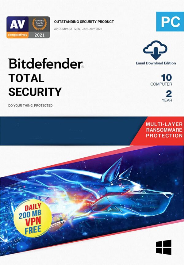 Bitdefender Total Security 10 Devices 2 Year Windows (Email Delivery)