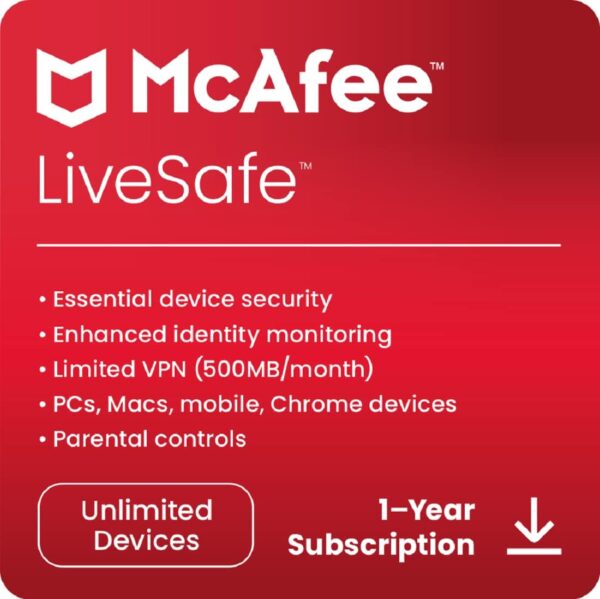 McAfee LiveSafe Unlimited Devices 1 Year Windows/Mac/Android/iOS (Email Delivery) (Global Code)